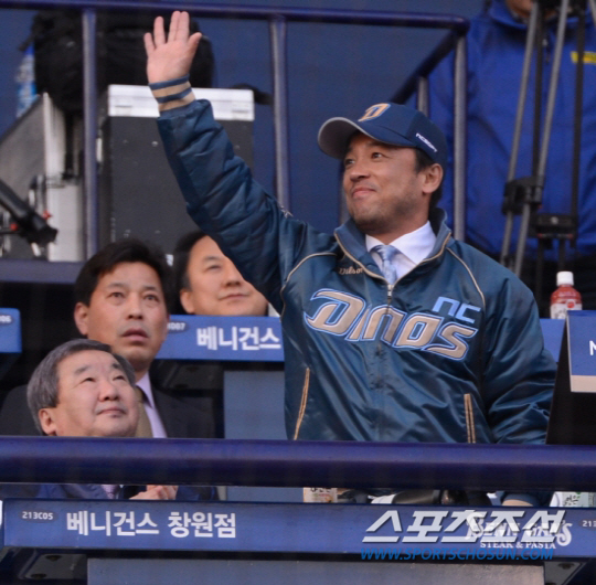 지난 2013년 4월 2일 마산구장서 열린 NC의 1군 개막전에서 엔씨소프트 대표이자 NC 구단주인 김택진 대표가 관중들에게 손을 들어 인사하고 있다. 창원= 김경민 기자 kyungmin@sportschosun.com