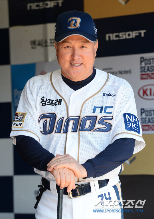 2015 프로야구 플레이오프 1차전 NC다이노스와 두산베어스의 경기가 18일 마산야구장에서 열렸다. 경기전 NC 김경문 감독이 선수들의 훈련을 지켜보고 있다. 마산=최문영 기자deer@sportschosun.com