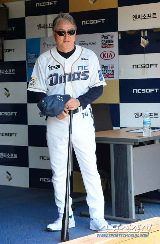2015 프로야구 플레이오프 1차전 NC다이노스와 두산베어스의 경기가 18일 마산야구장에서 열렸다. 경기전 NC 김경문 감독이 선수들의 훈련을 지켜보고 있다. 마산=최문영 기자deer@sportschosun.com /2015.10.18/
