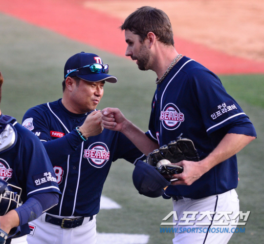 김 감독은 "7회 터진 민병헌의 스리런 홈런이 쐐기포였다. 준플레이오프부터 포스트시즌 가장 마음이 편했던 경기였다"고 말했다.