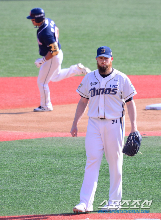 4회초엔 홍성흔의 제물이 됐다. 1사후 홍성흔에게 초구로 가운데로 몰린 121㎞의 커브를 던졌다가 통타당했다. 치는 순간 홈런임을 직감하게 한 큰 타구. NC 외야수들이 바로 추격을 포기하고 관중석으로 떨어지는 공을 바라만 봤다.
