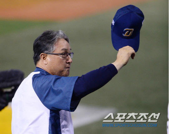19일 오후 창원시 마산야구장에서 2015 프로야구 플레이오프 1차전 두산과 NC의 경기가 열렸다. 2대1로 승리한 후 NC 김경문 감독이 관중들에게 인사하고 있다. 창원=김경민 기자 kyungmin@sportschosun.com / 2015.10.19. |