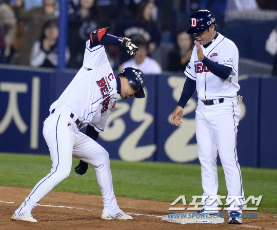 전형도 코치는 "팀내 주루 센스는 고영민이 최고다. 오재원도 최상급이다. 양의지 역시 느리지만, 매우 뛰어난 주루 센스를 가지고 있다"고 했다. 하지만, 양의지는 '쿨'하게 포기했다. 2차전 나성범의 타구에 맞은 오른 엄지발가락 미세골절의 여파 때문이다. 적극적인 주루는 하기 힘들다.