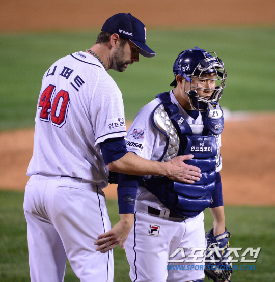 양의지는 "의미없는 유인구를 없애기 위해 노력했다. 카운트가 유리한 상태에서 과감하게 승부에 들어갔다"며 "포수 위치를 5일 휴식 때 약간씩 빠져 앉았다면, 이날은 정면에 앉은 채 포수 미트만 안쪽이나 바깥쪽으로 뻗어 탄착점을 형성했다"고 밝혔다. 니퍼트의 공격적 피칭을 유도하기 위해 선택한 최선의 방법이었다. 결국 통했다.