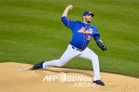 | 15년만에 월드시리즈에 오른 뉴욕 메츠가 맷 하비를 1차전 선발로 낙점했다. 지난 18일(한국시각) 시카고 컵스와의 내셔널리그 챔피언십시리즈 1차전서 투구를 하고 있는 하비. ⓒAFPBBNews = News1 |