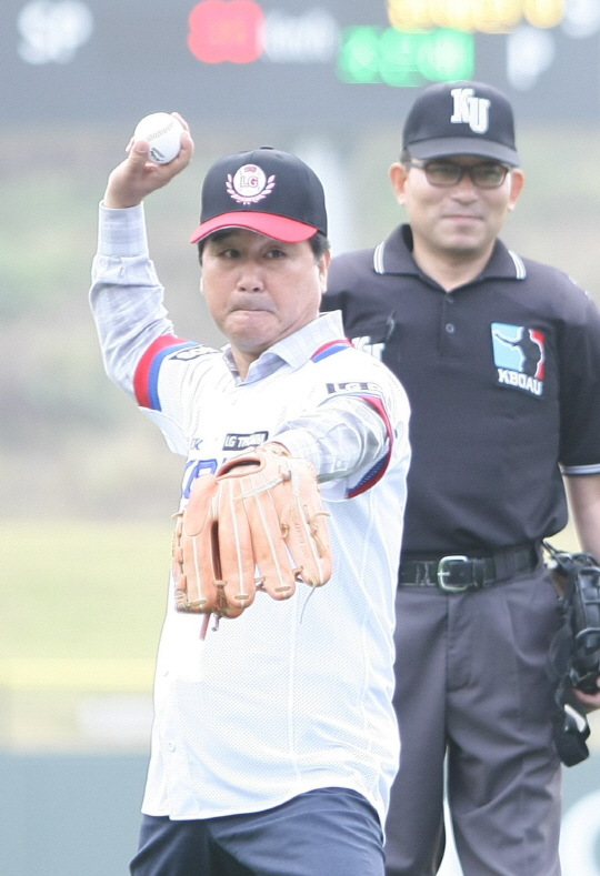 LG전자가 후원하는 2015 LG배 한국여자야구대회가 개막했다. 지난 24일 경기 이천에서 열린 개막경기에서 LG전자 한국영업본부장 최상규 사장이 시구를 하고 있다. 사진제공=LG전자 |