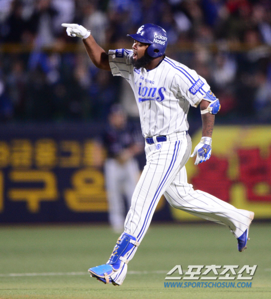 하지만 적시에 찾아온 찬스를 놓치지 않았다. 무사 1, 2루 찬스. 상대 투수 함덕주가 등판하자마자 배영섭을 사구로 내보내며 흔들리고 있었다. 나바로와의 승부도 3B1S까지 몰렸다. 함덕주의 5번째 공이 낮은 곳으로 들어오자 볼넷 아니냐는 제스처를 취하는 여유를 보인 나바로. 다시 한 번 함덕주의 낮은 직구가 들어왔다. 바로 전 투구와 비슷한 코스. 눈에 익은 공이 들어오자 시원하게 방망이가 돌아갔다. 한복판으로 몰린 공이 아니었다. 낮게 제구가 잘 됐는데 나바로가 엄청난 괴력으로 타구를 중앙 전광판쪽으로 보냈다. 백스크린을 넘기는 대형 홈런. 48홈런 타자의 위력은 큰 경기에서도 사라지지 않았다.