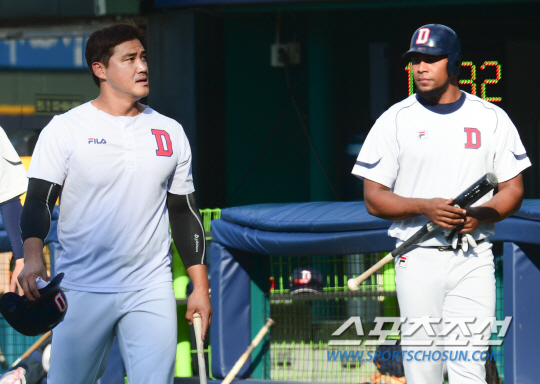 2015 프로야구 두산 베어스와 넥센 히어로즈의 경기가 9일 목동구장에서 열린다. 경기 전 두산 홍성흔과 로메로가 타격 훈련을 하기 위해 그라운드로 나오고 있다. 두산은 선발투수로 시즌성적 3승 1패 방어율 2.88의 허준혁을 내세웠다. 넥센에서는 5패 방어율 5.86의 문성현이 선발 등판한다. 목동=정재근 기자 cjg@sportschosun.com/2015.09.09/