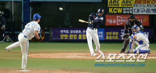 삼성과 두산의 2015 KBO 리그 한국시리즈 2차전이 27일 대구 시민구장에서 열렸다. 5회초 1사 두산 오재원이 2루타를 치고 있다. 대구=허상욱 기자 wook@sportschosun.com/2015.10.27/ |