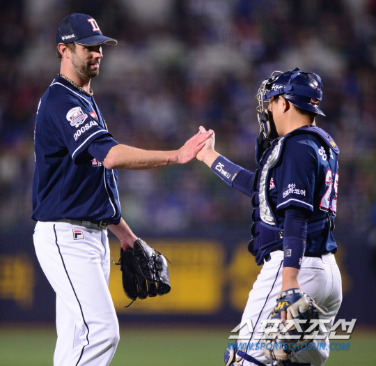 니퍼트는 경기 후 "추운 날씨였지만, 바람이 홈런 몇 개를 막아줘서 굉장히 고마웠다"며 "정규시즌 중에는 아팠던 곳이 많아서 기회가 없다가 포스트시즌 들어 (오래 던질 수 있는) 기회가 와서 좋은 결과도 나오는 것 같다"고 말했다. 이어 연속 이닝 무실점 신기록에 대해 "평소 기록을 별로 신경쓰지 않는다. 모르고 있었다"며 "(데일리 MVP로 받은 타이어는) 가게를 하나 차릴 생각"이라고 재치있게 밝혔다. 또 "삼성을 상대로는 운이 좋은 것 같다. 휴식이 짧지만 이틀에 걸쳐 하던 러닝을 하루에 몰아 하는 등의 변화로 다음 등판을 준비하고 있다"고 말했다.