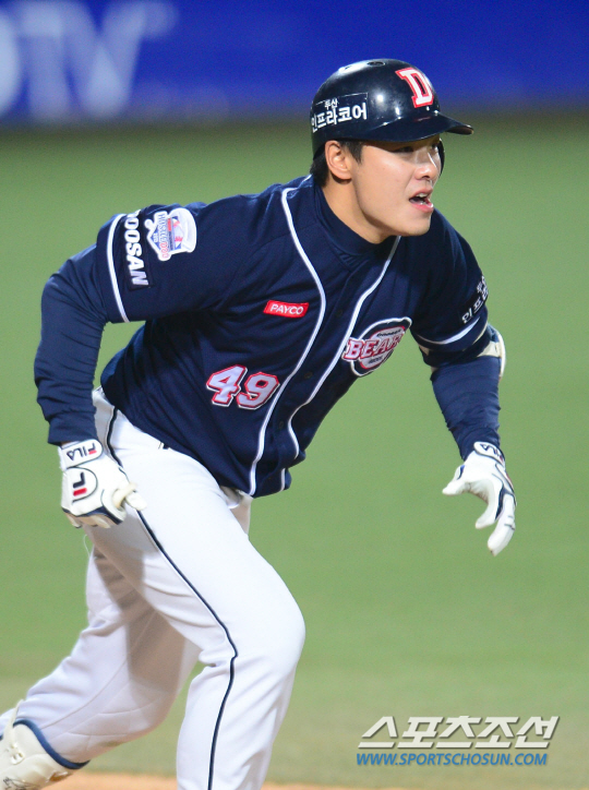 두산과 삼성의 2015 프로야구 한국시리즈 2차전 경기가 27일 대구구장에서 열렸다. 5회초 2사 만루 두산 민병헌이 2타점 안타를 친 후 달려나가고 있다. 두산은 선발투수로 PS 2승을 기록한 니퍼트를 내세웠다. 삼성은 시즌성적 10승 9패 방어율 5.80의 장원삼을 선발로 내세웠다. 대구=정재근 기자 cjg@sportschosun.com
