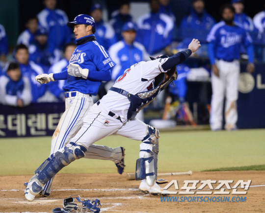 그런데 정작 김태형 감독이 놀란 건 KBO리그 신기록이 아닌 수비였다. 김 감독은 이날 경기 후 "전혀 예상치 못했다. 깜짝 놀랐다"고 허경민의 수비에 엄지를 치켜 들었다. 상황은 이랬다. 4-3으로 앞서던 두산은 9회 마무리 이현승이 내야 안타 2개에 좌전 안타 1개로 1사 만루 위기를 맞았다. 타석에는 9번 김상수. 김상수는 3루쪽으로 크게 바운드 된 땅볼 타구를 날렸다. 여기서 허경민이 포구한 뒤 몸을 살짝 틀어 홈으로 뿌렸다. 타자 김상수의 발이 빨라 애초 병살 플레이는 불가능하다고 여겨 3루 주자 박해민의 득점을 저지하겠다는 판단을 한 것이다. 이후 허경민의 정확한 송구로 박해민은 포스 아웃 됐다 마운드에 있던 이현승도 허경민의 호수비 덕분에 계속된 2사 만루에서 구자욱을 유격수 땅볼로 처리하며 실점 없이 팀 승리를 지켰다.