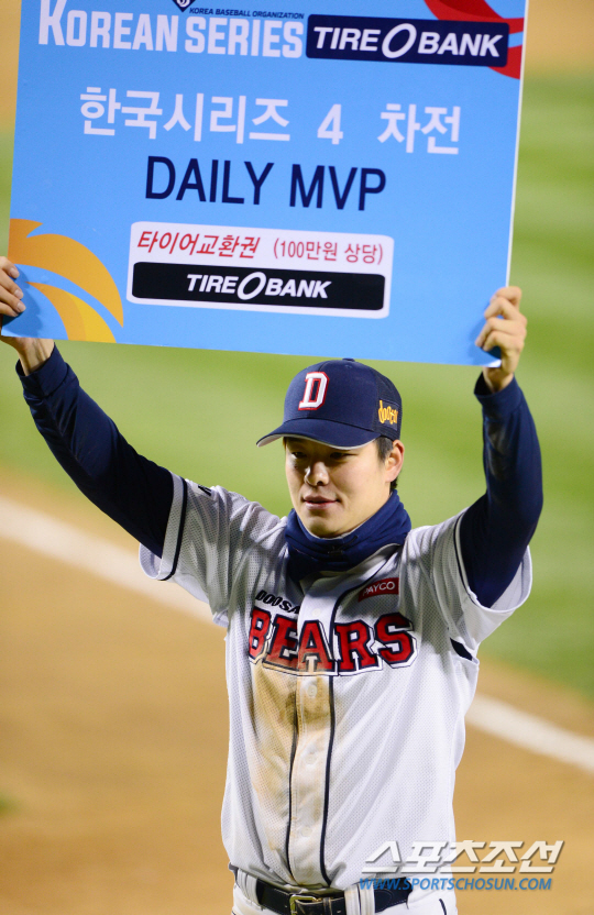 30일 오후 잠실야구장에서 2015 프로야구 한국시리즈 4차전 삼성과 두산의 경기가 열렸다. 한국시리즈 4차전 MVP 두산 민병헌 잠실=김경민 기자 kyungmin@sportschosun.com / 2015.10.30.