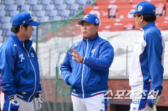 11월 1일 인천 문학구장에서 프리미어12에 참가하는 야구대표팀이 훈련을 펼쳤다. 야구 대표팀은 오는 8일 일본 삿포로돔에서 일본 야구 대표팀을 상대로 '2015 WBSC 프리미어12' 개막전을 치른다. 김인식 감독이 이순철 코치, 선동열 코치(오른쪽)와 대화를 나누고 있다. 인천=송정헌 기자 songs@sportschosun.com/2015.11.01 |
