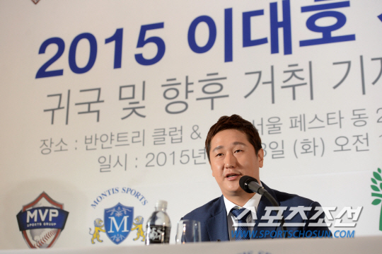 이대호가 3일 서울 반얀트리 클럽 앤 스파에서 귀국 및 향후 거취 기자회견을 가졌다. 이대호가 질문에 답하고 있다. 롯데 자이언츠를 떠나 오릭스와 소프트뱅크에서 2년씩 뛴 활약한 이대호는 소속팀을 지난해에 이어 일본시리즈 정상으로 이끌었고 일본시리즈 MVP로 선정되며 시즌 피날레를 멋지게 장식했다. 허상욱 기자 wook@sportschosun.com/2015.11.03/ |