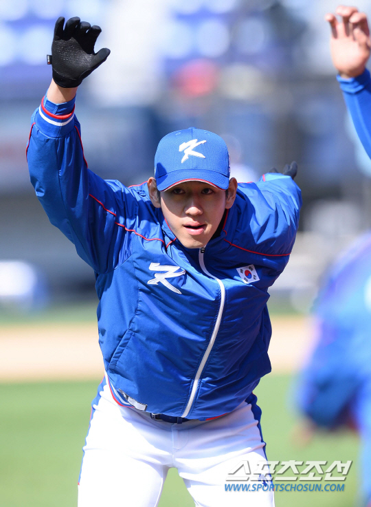11월 부터 일본과 대만에서 열리는 프리미어12에 참가하는 야구대표팀이 28일 서울 잠실야구장에서 이틀째 훈련을 이어갔다. 대표팀 이대은이 본격적인 훈련에 앞서 스트레칭으로 몸을 풀고있다. 대표팀의 훈련은 잠실야구장과 인천문학구장을 거쳐 고척돔에서 2일까지 이어진다. 잠실=최문영 기자 deer@sportschosun.com /2015.10.28/