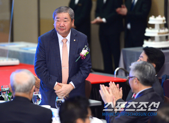 2일 서울 중구 밀레니엄 힐튼호텔에서 한국프로스포츠협회 출범식이 열렸다. (사)한국프로스포츠협회(회장 권오갑)는 한국프로축구연맹과 한국야구위원회, 한국농구연맹, 한국여자농구연맹, 한국배구연맹, 한국프로골프협회, 한국여자프로골프협회 등 7개 프로 단체가 참여했다. 출범식에 참석한 구본능 KBO 총재가 인사하고 있다. 송정헌 기자 songs@sportschosun.com/2015.11.02