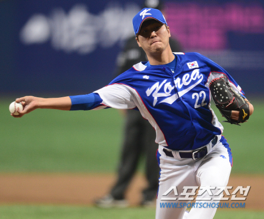 5일 서울 고척스카이돔구장에서 한국과 쿠바의 2015 서울 슈퍼시리즈가 열렸다. 한국 선발투수 우규민이 힘차게 공을 던지고 있다. 야구 대표팀 선수들은 4, 5일 쿠바 대표팀과 두 차례 평가전을 치른 후 8일 개막하는 국가대항전 '2015 프리미어 12' 대회에 출전한다. 고척돔=정재근 기자 cjg@sportschosun.com