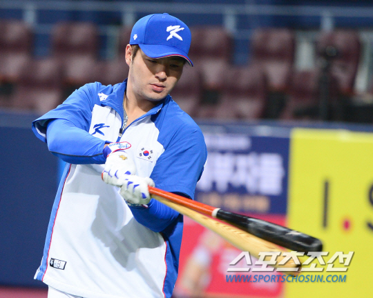프리미어12 야구대표팀이 5일 고척스카이돔에서 쿠바와의 '2015 서울 슈퍼시리즈' 2차전 경기를 펼친다. 야구대표팀은 오는 8일 개막하는 프리미어12에 앞서 쿠바를 초청해 4일과 5일 평가전을 갖고 컨디션을 점검한다. 경기 전 대표팀 선수들이 훈련에 임하고 있다. 박병호가 배팅훈련을 준비하고 있다. 송정헌 기자 songs@sportschosun.com/2015.11.05
