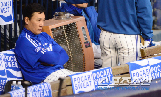 31일 오후 잠실야구장에서 2015 프로야구 한국시리즈 5차전 삼성과 두산의 경기가 열렸다. 8회말 삼성 덕아웃의 이승엽이 경기를 지켜보고 있다. 잠실=김경민 기자 kyungmin@sportschosun.com / 2015.10.31.