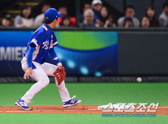 프리미어12 한국 야구대표팀 김인식 감독의 '모험'이 결국 화를 불렀다. 선발 3루수로 내보낸 허경민이 공을 뒤로 빠트리는 실책으로 첫 실점을 헌납했다.