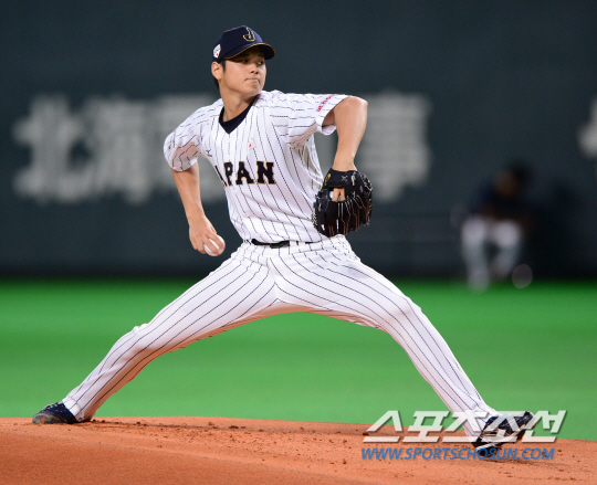 오타니는 8일 일본 삿포로돔에서 열린 프리미어12 대회 한국과의 개막전에 선발 등판했다. 이미 일본 대표팀 고쿠보 히로키 감독은 오타니를 개막전 선발로 일찌감치 예고해놓았다. 확실한 자신감의 발로였다. 그리고 오타니는 왜 고쿠보 감독이 '전력 노출'의 부담에도 아랑곳하지 않고 자신있게 선발을 공개했는 지 실력으로 입증했다. 아무리 분석을 했더라도 오타니의 공을 제대로 치기는 어려웠다.