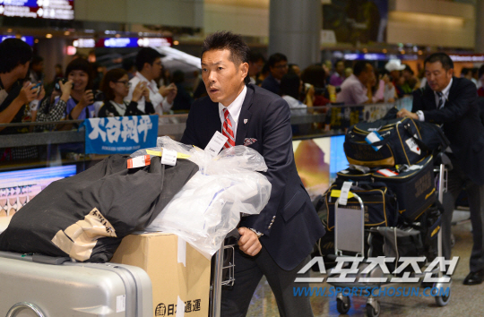프리미어12에 참가하는 일본 야구대표팀이 9일 오후 타이베이 타오위안 공항을 통해 대만에 입국했다. 일본 대표팀은 8일 일본 삿포르에서 열린 개막전에서 선발 오타니 료헤이의 6이닝 무실점 활약으로 대한민국에 5대0 완봉승을 거뒀다. 일본 대표팀 선수들이 입국장을 나서고 있다. 많은 취재진과 팬들의 관심 속에 입국하고 있는 고쿠보 감독. 타이베이(대만)=송정헌 기자 songs@sportschosun.com/2015.11.09