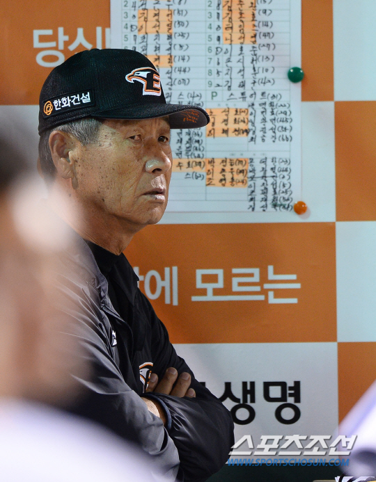 18일 대전 한화생명이글스파크에서 KBO리그 한화 이글스와 NC 다이노스의 2연전 두 번째 경기가 열렸다. NC는 5연승을 기록 중이며 한화는 2연패에 빠져있다. 초반부터 많은 점수 차이로 경기를 끌려가자 답답한 듯 아쉬운 표정을 짓고 있는 김성근 감독. 대전=송정헌 기자 songs@sportschosun.com/2015.09.18