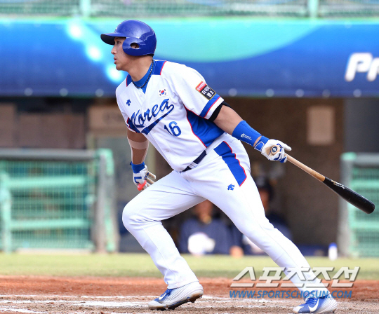 프리미어12에 참가하는 야구대표팀이 12일 오후 대만 타이베이 타오위안구장에서 베네수엘라와 조별리그 3차전 경기를 펼쳤다. 황재균이 6회 안타를 날리고 있다. 타이베이(대만)=송정헌 기자 songs@sportschosun.com/2015.11.12