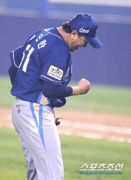 ◇이제는 더이상 선수 유니폼을 입은 그를 볼 수 없다. 손민한이 지난달 21일 잠실구장에서 열린 두산과의 플레이오프 3차전에서 경기중 주먹을 쥐어보이고 있다. 이날 손민한은 역대 최고령 포스트시즌 선발승의 주인공이 됐다. 잠실=송정헌 기자 songs@sportschosun.com