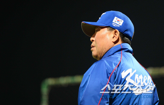 프리미어12에 참가하는 야구대표팀이 10일 오후 타이베이 티엔무구장에서 공식훈련을 펼쳤다. 야구대표팀은 11일부터 도미니카공화국과 조별리그 2차전 경기를 펼친다. 선수들이 훈련에 임하고 있다. 김인식 감독이 선수들의 타격을 지켜보고 있다. 타이베이(대만)=송정헌 기자 songs@sportschosun.com/2015.11.10