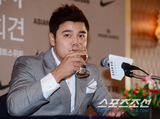 15일 서울 소공동 롯데호텔에서 열린 귀국 기자회견. 추신수(텍사스 레인저스)가 메이저리그 도전을 앞둔 '후배'들에게 애정어린 조언을 했다. 82년생 동갑내기 이대호가 됐든, 미네소타 트윈스와 연봉 협상을 하고 있는 박병호가 됐든, 마이너리그에서 눈물 젖은 빵을 먹고 있는 어린 선수들이 됐든 "자신의 꿈을 한 번 이뤄봤으면 한다"고 말했다.