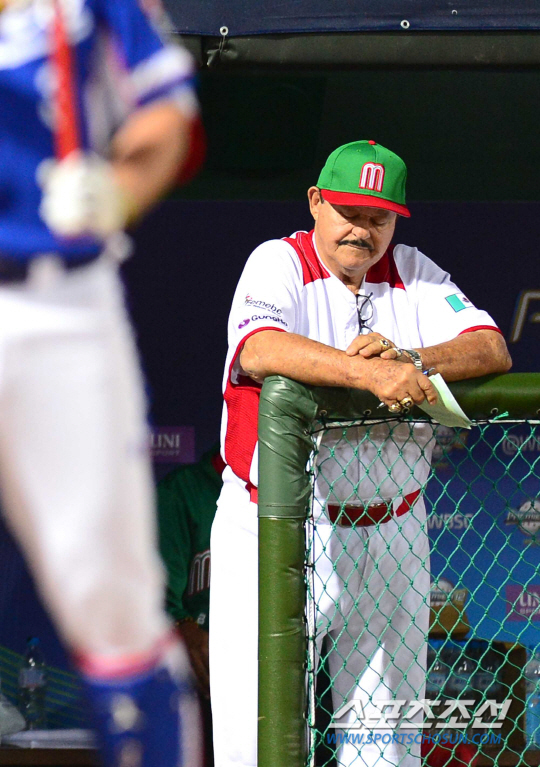 야구대표팀이 14일 오후 대만 타이베이시 티엔무구장에서 멕시코와 국가대항전 2015 프리미어 12 대회 조별예선 4차전 경기를 펼쳤다. 2승 1패를 기록 중인 대표팀은 멕시코전을 승리할 경우, 마지막 미국전에 상관없이 8강 진출을 확정하게 된다. 박병호가 3회 멕시코 카리요를 상대로 도망가는 솔로홈런을 날렸다. 고개를 떨구고 있는 멕시코 마이크 브리또 감독. 타이베이(대만)=송정헌 기자 songs@sportschosun.com/2015.11.14