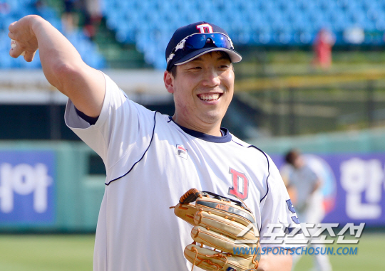 19일 대전 한화생명이글스파크에서 KBO리그 한화 이글스와 두산 베어스의 주말 2연전 첫 번째 경기가 펼쳐진다. 경기 전 밝은 표정으로 훈련에 임하고 있는 두산 김현수. 대전=송정헌 기자 songs@sportschosun.com/2015.09.19