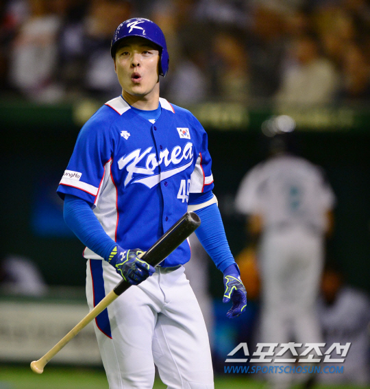 19일 오후 일본 도쿄돔에서 프리미어 12 준결승 일본과 한국의 경기가 열렸다. 5회초 민병헌이 삼진 아웃당하고 있다. 도쿄=김경민 기자 kyungmin@sportschosun.com / 2015.11.19. |