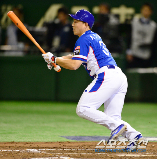 19일 오후 일본 도쿄돔에서 프리미어 12 준결승 일본과 한국의 경기가 열렸다. 9회초 무사 1루서 손아섭이 중전안타를 치고 있다. 도쿄=김경민 기자 kyungmin@sportschosun.com / 2015.11.19.