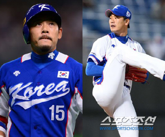 그 간의 부진을 딛고 미국과의 결승전에서 맹활약한 이용규(왼쪽)과 김광현. 스포츠조선 DB.