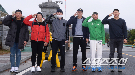 '2015 프리미어12' 에 참가하고 22일 귀국한 삼성 차우찬, 김상수, NC 나성범, 롯데 손아섭, 황재균, 두산 오재원이 23일 충남 세종시에 취치한 32사단 훈련소에 입소했다. 이들은 지난해 인천 아시안게임 금메달 획득으로 군면제 혜택을 받았고 4주간의 기초 군사훈련에 임하게 된다. 세종시=최문영 기자 deer@sportschosun.com /2015.11.23/