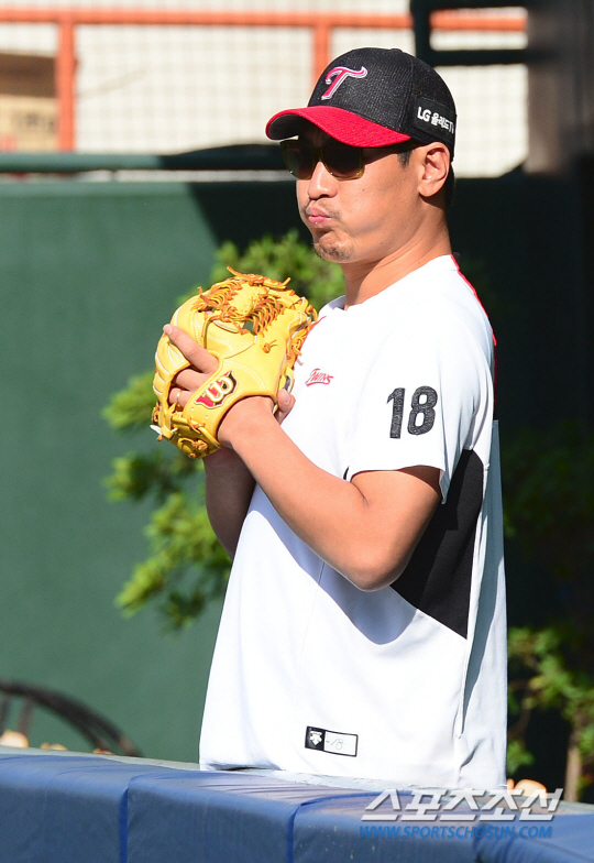 2015 프로야구 LG 트윈스와 넥센 히어로즈의 경기가 16일 목동구장에서 열린다. 경기 전 LG 이동현이 훈련 준비를 하고 있다. LG는 선발투수로 시즌성적 7승 9패 방어율 3.92의 우규민을 내세웠다. 넥센에서는 1패 방어율 8.31의 오재영이 선발 등판한다. 목동정재근 기자 cjg@sportschosun.com/2015.09.16/ |