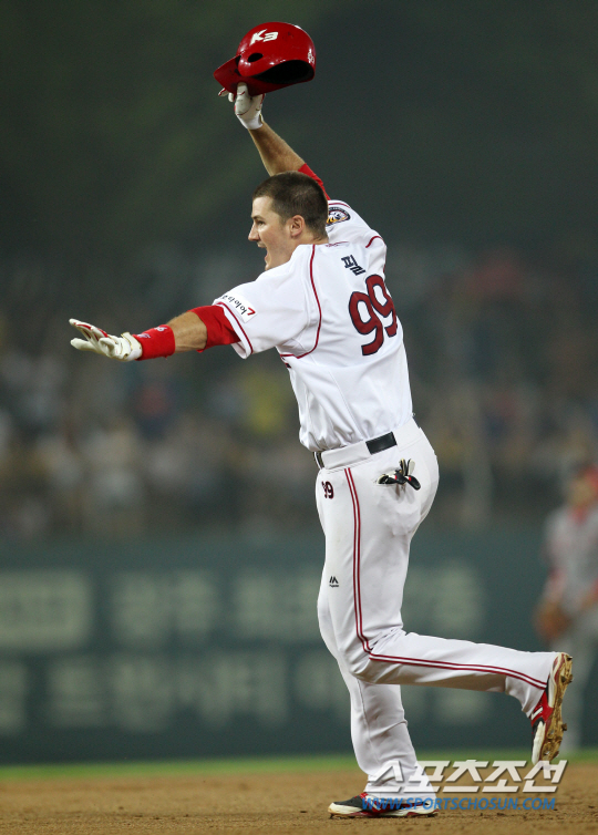 KIA 타이거즈 브렛 필이 SK 와이번스전에서 끝내기 안타를 때리고 환호하는 모습. 사진제공=KIA 타이거즈.