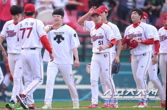 2015 KBO리그 KIA타이거즈와 SK와이번즈의 경기가 26일 광주기아챔피언스필드에서 열렸다. SK를 상대로 2점차 승리를 거둔 KIA 김기태 감독이 승리투수 양현종과 하이파이브 하고 있다. 광주=최문영 기자 deer@sportschosun.com /2015.09.26/