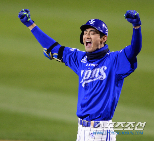 ◇구자욱이 이승엽의 길을 따라 걷는다면 메이저리거가 꿈만은 아니다. 2015 프로야구 한국시리즈 4차전 삼성과 두산의 경기. 2회초 2사 2,3루서 삼성 구자욱이 2타점 적시타를 친 후 환호하고 있다. 잠실=김경민 기자 kyungmin@sportschosun.com / 2015.10.30. |