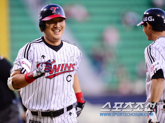 전날 연장 12회 혈투를 치른 LG와 한화가 9일 잠실에서 다시 만났다. LG 이진영이 1회말 무사 1루에서 우중월 투런 홈런을 치고 박용택과 하이파이브를 하고 있다. 잠실=조병관기자 rainmaker@sportschosun.com/2015.09.09/
