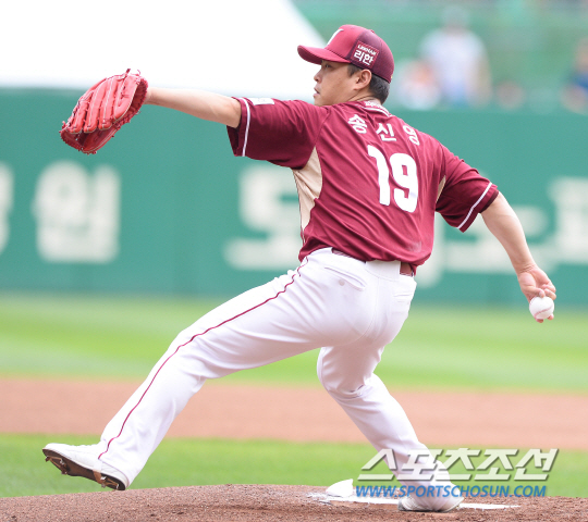28일 인천 SK행복드림구장에서 KBO리그 SK 와이번스와 넥센 히어로즈의 경기가 열렸다. SK 박종훈과 넥센 송신영이 선발 맞대결을 펼쳤다. 힘차게 투구하고 있는 송신영. 인천=송정헌 기자 songs@sportschosun.com/2015.09.28