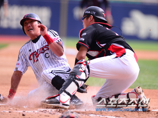 2015 프로야구 LG와 KT의 경기가 20일 잠실 야구장에서 펼쳐 졌다. LG 1회말 1사 1,3루 박용택 타석때 더블 스틸은 시도 3루주자 이진영이 홈에서 세이프 되고 있다. 잠실=조병관기자 rainmaker@sportschosun.com/2015.09.20/
