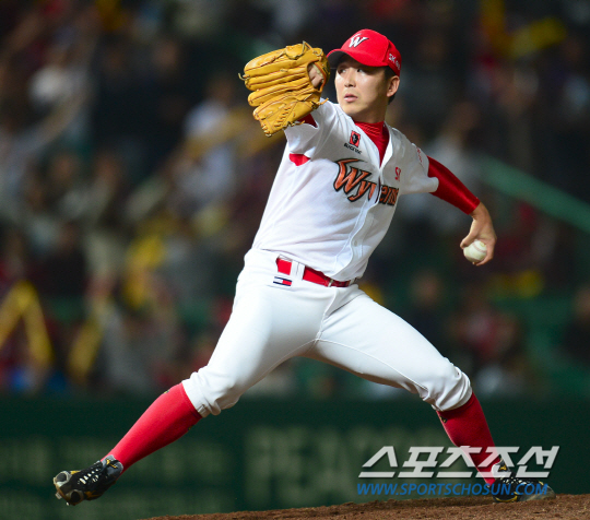 2015 프로야구 KIA 타이거즈와 SK 와이번스의 경기가 19일 인천 SK행복드림구장에서 열렸다. 정우람이 9회 등판해 힘차게 공을 던지고 있다. KIA는 선발투수로 시즌성적 1승 2패 방어율 6.99의 임기준을 내세웠다. SK에서는 7승 10패 방어율 4.41의 켈리가 선발 등판했다. 인천=정재근 기자 cjg@sportschosun.com/2015.09.19/ |