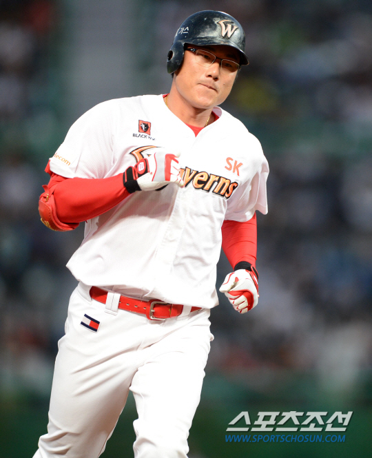 SK와 롯데의 2015 KBO 리그 경기가 9일 인천 SK행복드림구장에서 열렸다. 2회말 SK 박정권이 롯데 배장호의 투구를 받아쳐 우측담장을 넘어가는 동점 솔로홈런을 날렸다. 여유있는 표정으로 베이스를 도는 박정권. 인천=허상욱 기자 wook@sportschosun.com/2015.09.09/ |
