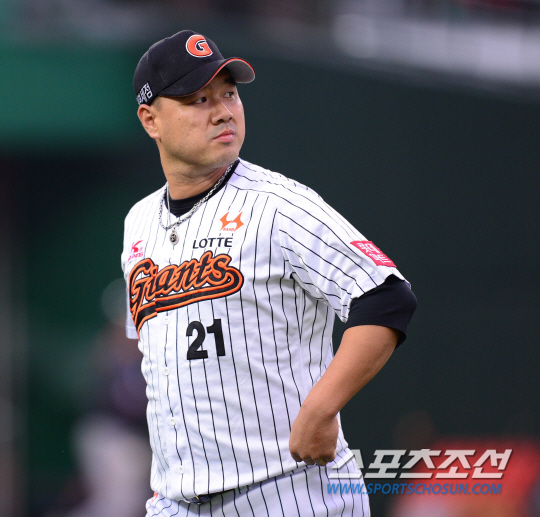 12일 오후 부산 사직야구장에서 2015 프로야구 한화와 롯데의 경기가 열렸다. 1회초 수비를 마친 롯데 선발투수 송승준이 덕아웃으로 향하고 있다. 부산=김경민 기자 kyungmin@sportschosun.com / 2015.09.12.