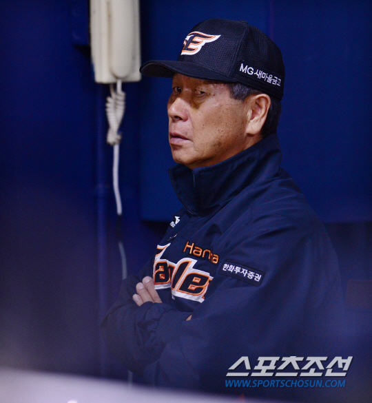 2일 오후 서울 잠실야구장에서 2015 프로야구 한화와 LG의 경기가 열렸다. 한화 김성근 감독이 경기를 지켜보고 있다. 잠실=김경민 기자 kyungmin@sportschoun.com / 2015.10.02.