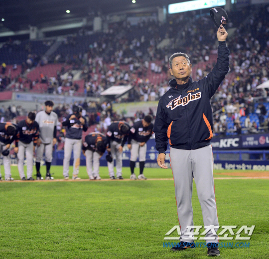 2일 오후 서울 잠실야구장에서 2015 프로야구 한화와 LG의 경기가 열렸다. 6대3으로 승리한 후 한화 김성근 감독이 관중들에게 인사하고 있다. 잠실=김경민 기자 kyungmin@sportschoun.com / 2015.10.02. |